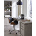 The Oxford cabinet combines bold design with versatile storage. Finished in weathered Mineral and accented with nickel-plated pulls, it features adjustable shelves and soft-close doors—perfect for organizing your home office in style.