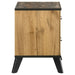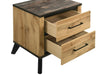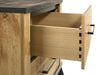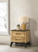 Add charm and functionality to your bedroom with this mid-century modern rustic nightstand. Featuring a weathered brown and natural pine finish, matte black metal pulls, and smooth-drawer construction with English dovetail joinery, it offers stylish storage and lasting durability.