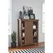 • Sliding door design offers both concealed storage and open display options