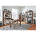 The Monroe Home Office Collection blends classic farmhouse styling with industrial accents. Built with solid Pine, heavy posts, roughhewn surfaces, and a weathered Flint Oak finish, it offers durable craftsmanship and timeless rustic character. Sliding doors and open shelves provide flexible storage and display options.