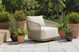 Alpine Teak Wood Modern Swivel Outdoor Arm Chair – Beige