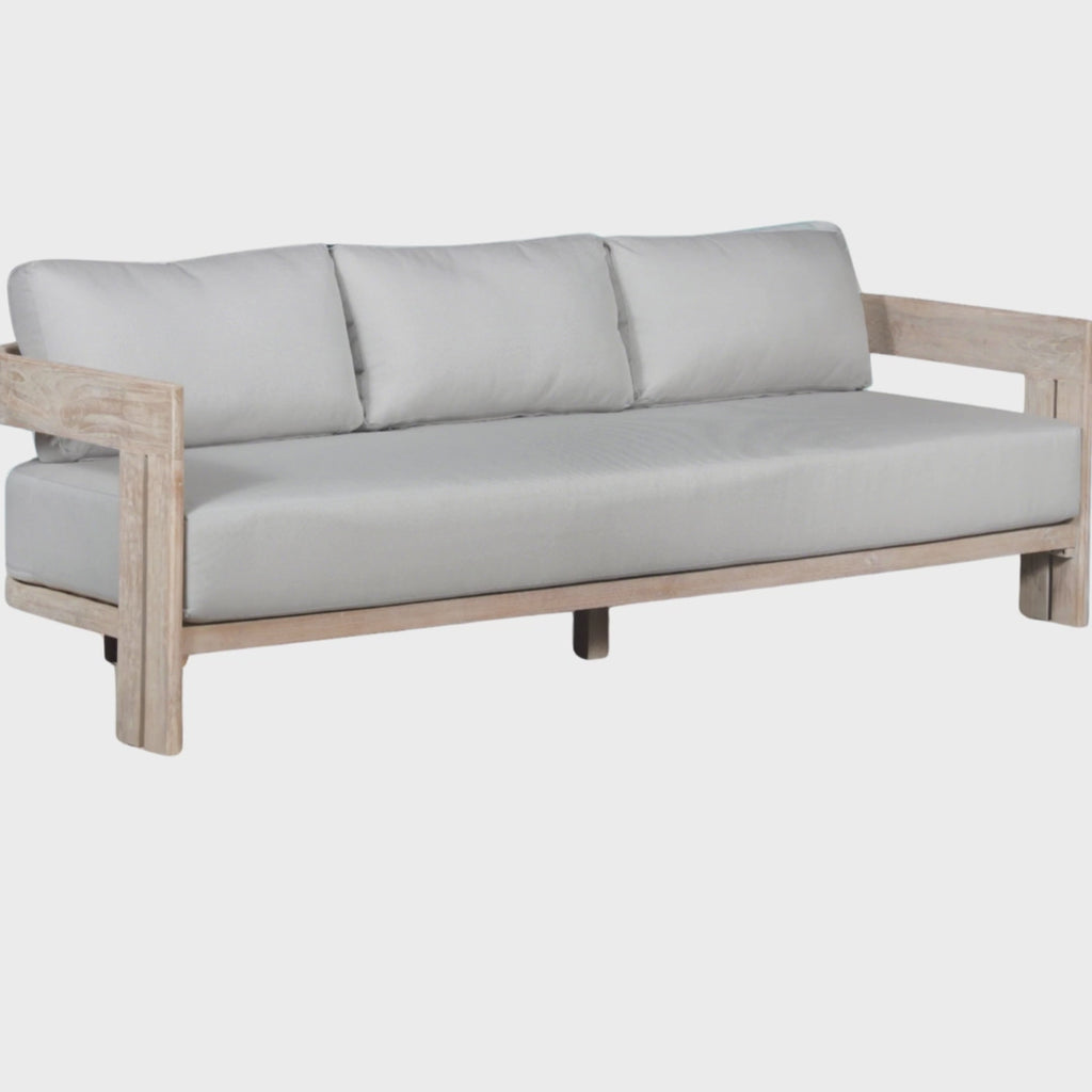 Paradiso Teak Wood Sofa Natural Look - Light Grey Fabric