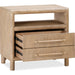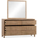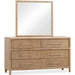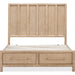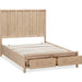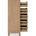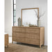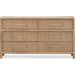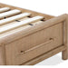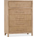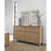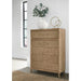 The Sivra Collection Storage Bedroom Set brings a modern feel to natural wood with its thick rounded framing, vertical grain patterns and light “Granola” finish. Wire-brushed Acacia surfaces mimic the texture of naturally weathered wood, while simple elongated bar pulls complete the clean, contemporary look.