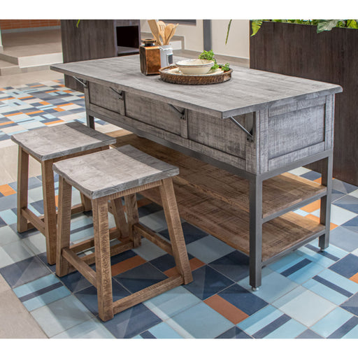 Amelia 3 Drawer Contemporary Solid Wood Kitchen Island