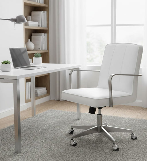 Seabourne Metal Frame Home Office Chair in Stainless Steel & White Leather