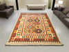 Add a vibrant touch of traditional craftsmanship to your home with this authentic Afghan Kilim rug, handwoven by skilled artisans using centuries-old techniques. Made from 100% natural wool, this flatweave rug features bold tribal geometric patterns and rich colors that bring warmth and character to any room.