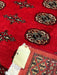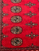 Handcrafted by master weavers in Pakistan, this Bokhara rug is a beautiful expression of timeless artistry and meticulous technique. The design features the classic Tekke “gul” motifs arranged in symmetrical rows, set against a rich red background with ivory and black accents—a hallmark of the Bokhara style.