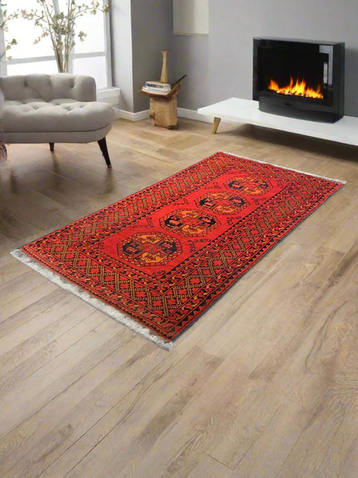 • Terkaman Tribal Afghan Oriental Rug, size 4' x 6'