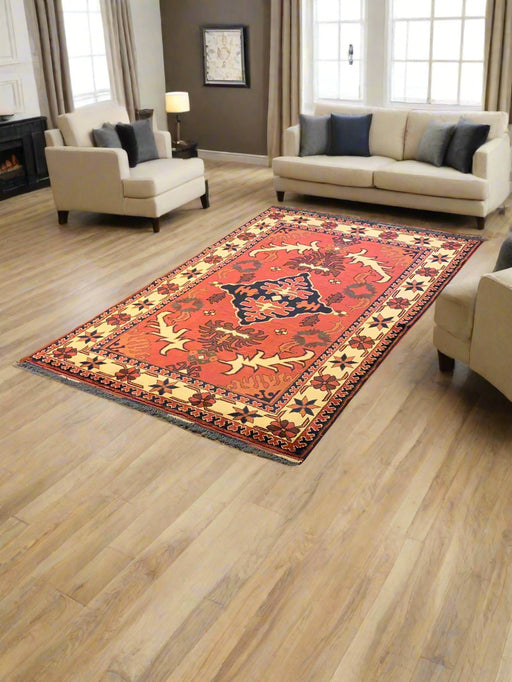 • Hand-Knotted Vegetable Dye Kazak Rug from Pakistan, size 3' 7" x 5' 8"