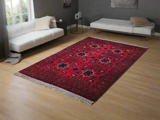 • Terkaman Tribal Afghan Oriental Rug, size 4' 5" x 6' 10"