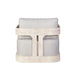 Here is a fresh new look at your outdoor furniture with the Paradiso collection. Entertain your friends and family out on your deck this summer.  Made of Teak wood native of Southeast Asia. The most durable garden furniture you can own. It will withstand extreme weather conditions. The swivel chair is designed beautifully with straight lines and fabric white tick cushions to add to your comfort.