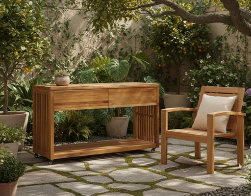 Our Teak outdoor furniture is made to last in all weather conditions while keeping its beauty. Its natural oils protect it from rain, sun, and pests, making it strong and long-lasting. Whether placed on teak outdoor patio furniture, deck, or garden, outdoor teak patio furniture adds both style and function. With little maintenance, it stays in great shape for years, making it the best teak patio furniture for any home.