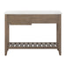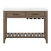 Sleek and functional, the Edison Server features a Brownstone Rubberwood frame, faux marble top, storage drawers, and built-in stemware and wine bottle shelving. Perfect for modern dining spaces.