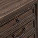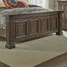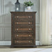 Bring home rustic elegance with the Valley Crest Bedroom Set. Crafted from rubberwood solids and birch veneers in a rich brownstone finish, this set features heavy distressing, crown molding, and bold architectural details. The mansion-style bed, spacious dresser with doors and drawers, beveled mirror, and chest offer both charm and function. Premium felt-lined and cedar-lined drawers add a touch of luxury, while antique pewter hardware completes the look.