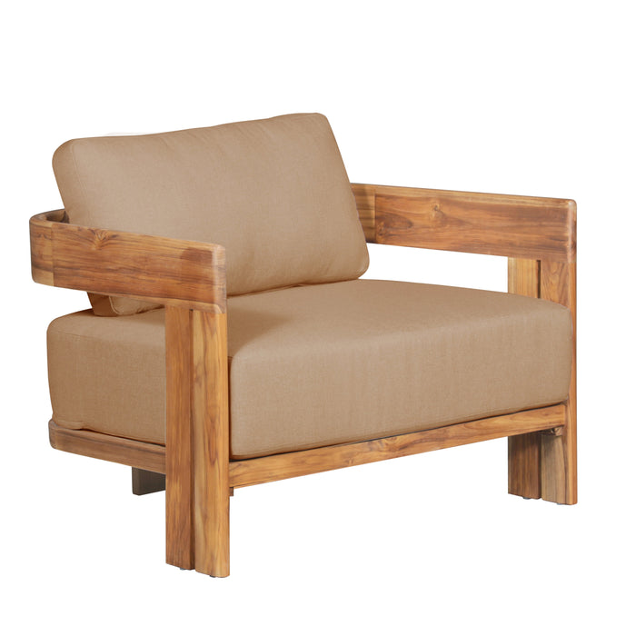 Paradiso Outdoor Solid Teak Wood Chair - light brown fabric