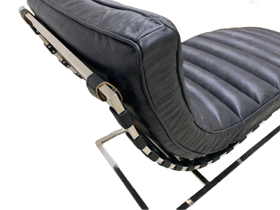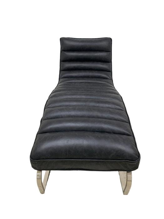 Plano Modern Channeled Leather Chaise Lounge - Slate Leather