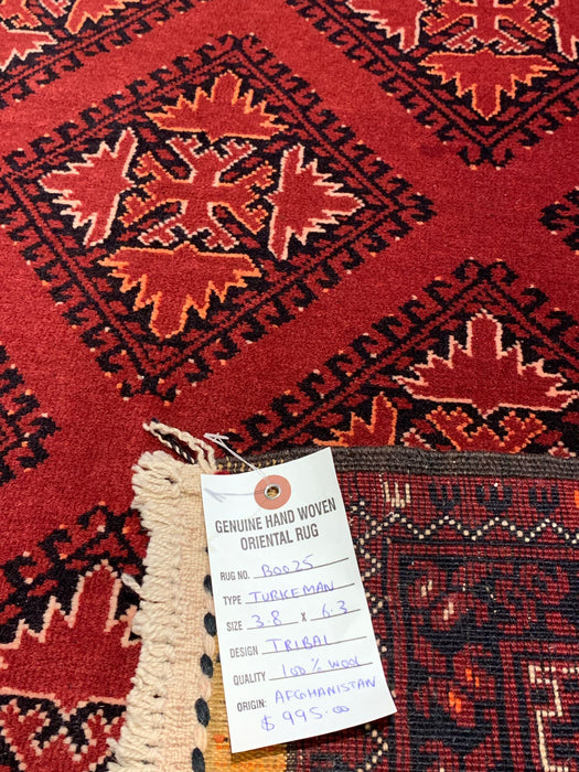 Terkaman Tribal Afghan Oriental Rug, size 3' 8" x 6' 3" (Y)