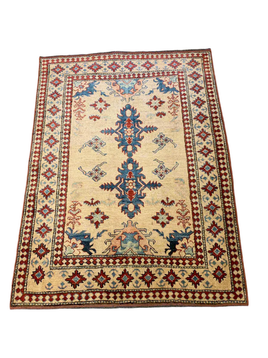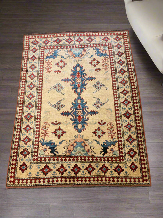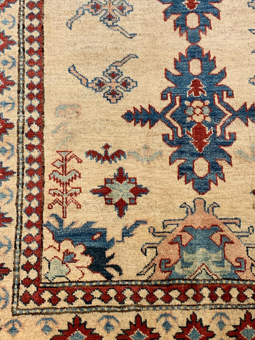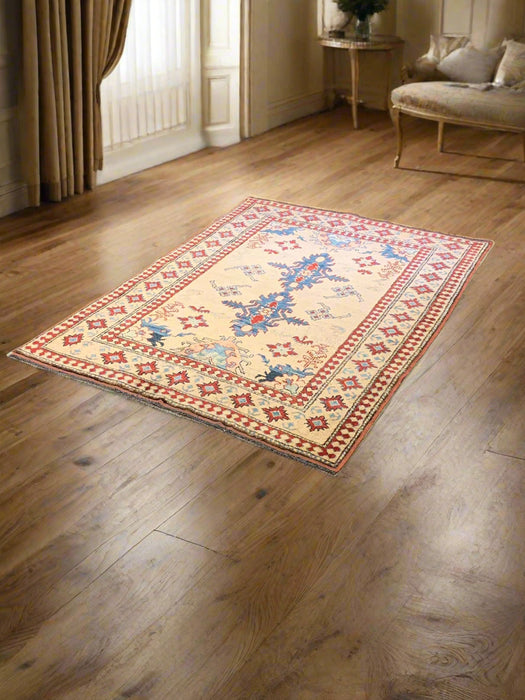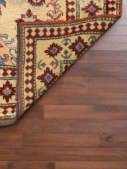Bring timeless character and bold elegance to your home with this fine hand-knotted Kazak rug, crafted in Pakistan using 100% hand-spun wool and all-natural vegetable dyes. Inspired by the tribal patterns of the Caucasus mountains, this rug is a striking blend of traditional design and artisanal skill.