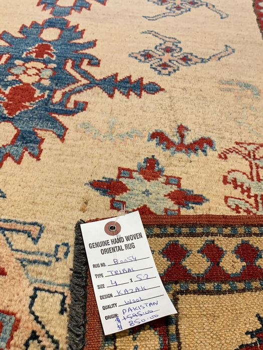 Hand-Knotted Vegetable Dye Kazak Rug from Pakistan, size 4" x 5' 2" (Y)
