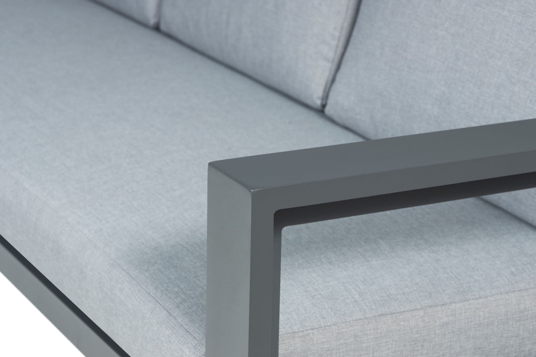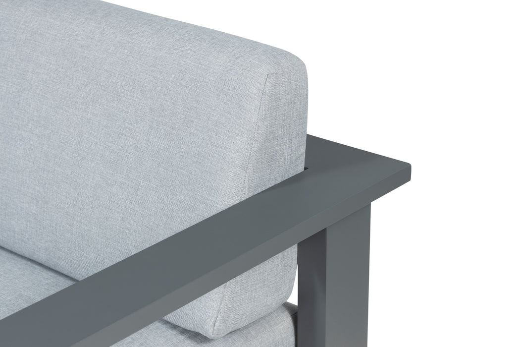 The Sardinia collection has a fresh modern feel. This will be the only outdoor furniture we will need, as it is made with resistance to the outside weather conditions. Very durable and designed for comfort. Metal frame and fabric gray cushions. Enjoy your summer days and nights with these beautiful pieces.